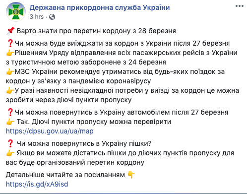 По состоянию на 18.00 27 марта в пункте пропуска Корчова-Краковец остается очередь из 1800 человек, там с ночи пропустили больше 3 тысяч человек, в пункте Гребенное- Рава-Русская пропустили около 4 тысяч и еще почти 6 тысяч - на КПП Дорогуск - Ягодин.