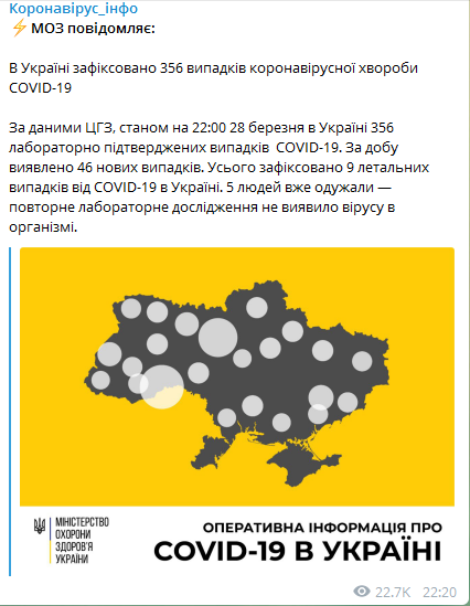 22:12 По состоянию на 22:00 в Украине 356 случаев коронавируса