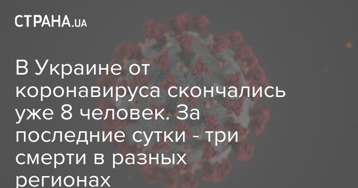 В Украине число умерших от коронавируса увеличилось до восьми человек. За минувшие сутки скончались трое больных в Ровенской, Сумской и Ивано-Франковской областях.
