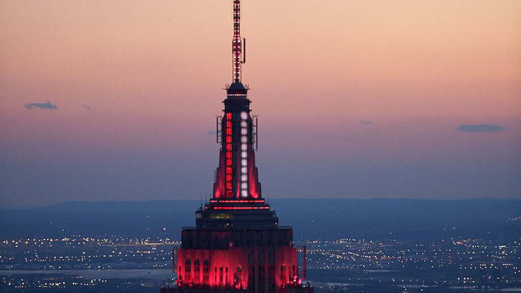 Эмпайр-стейт-билдинг подсветили красными и белыми огнями. Фото: Twitter/ Empire State Building