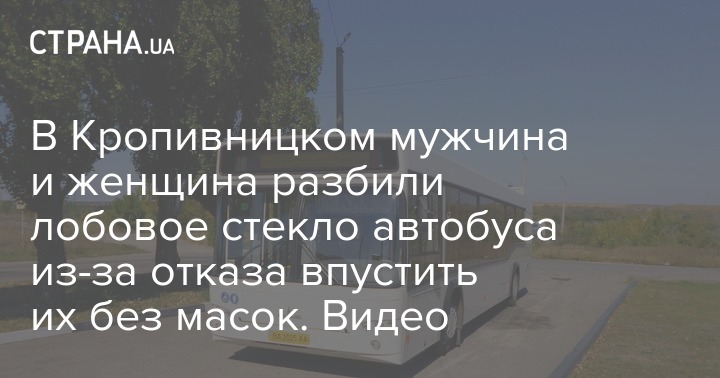 В Кропивницком мужчина и женщина разбили лобовое стекло автобуса после того, как кондуктор отказался впускать их в салон без медицинских масок.