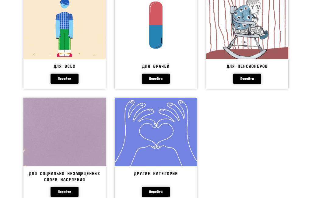 На сайте работают пять основных разделов - категории тех, кому адресуется помощь: