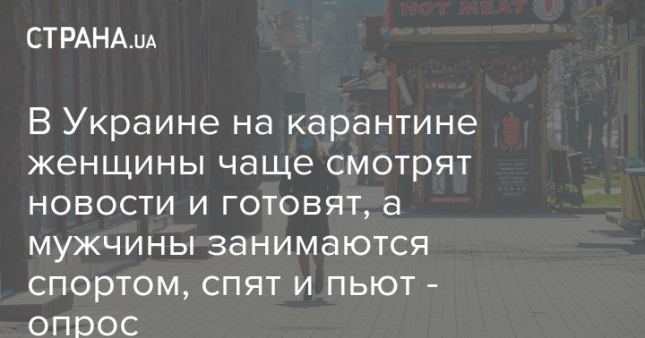 Во время карантина, который завершится не ранее 24 апреля, украинцы стали больше следить за новостями, смотреть фильмы и сериалы, заниматься саморазвитием, готовкой и уборкой. При этом женщины чаще проводят время на кухне, а мужчины больше пьют и занимаются спортом.