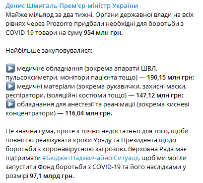 19:47 За две последние недели Украина уже потратила почти миллиард гривен на защиту от коронавируса, но нужно еще 96. Об этом сообщается в Telegram-канале премьер-министра Дениса Шмыгаля