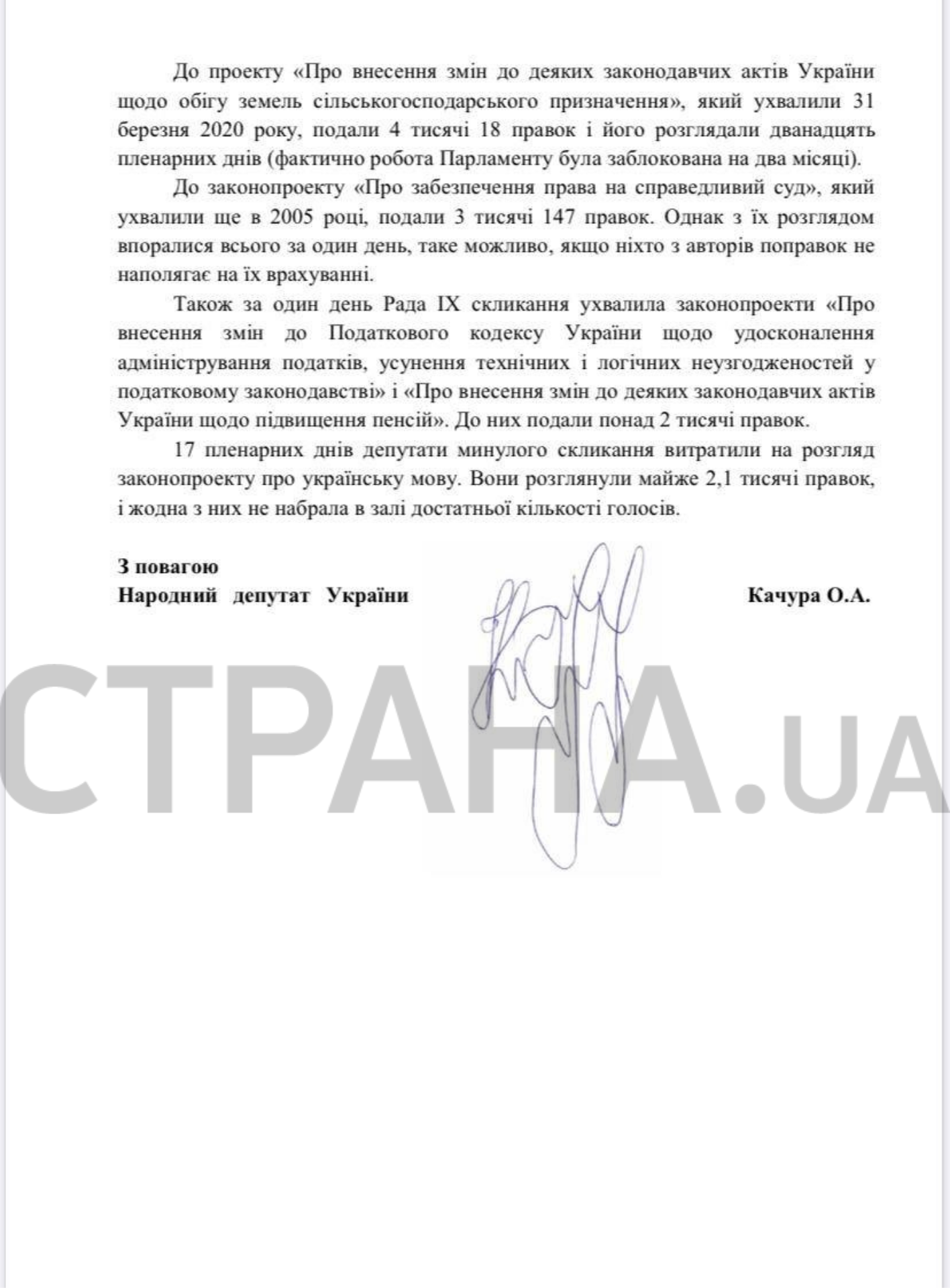 Депутат фракции "Слуга народа" Александр Качура подал обращение к главе редакционного совета национального проекта "Книга рекордов Украины" с прошением зафиксировать рекорд по количеству правок "антиколомойскому" закону.