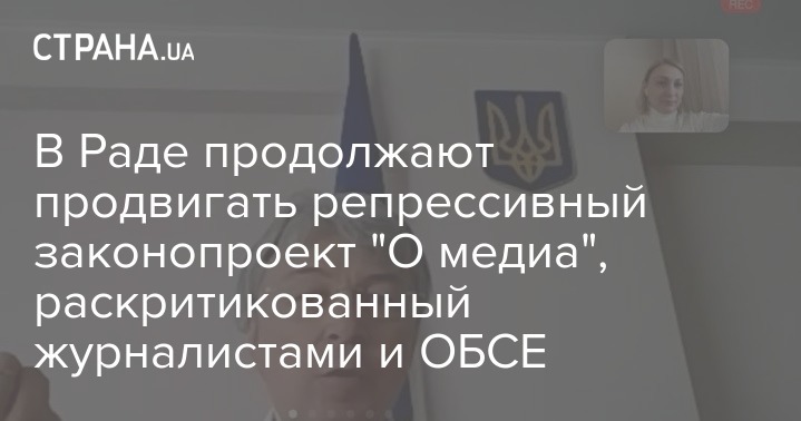 Заместитель председателя фракции "Слуга народа" в Верховной Раде Евгения Кравчук сообщила, что Комитет по вопросам гуманитарной и информационной политики продолжает работу над законопроектом "О медиа". Этот документ вызвал возмущение многих организаций, включая ОБСЕ, так как усиливает давление власти на СМИ.