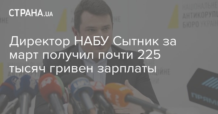 Зарплата за март директора Национального антикоррупционного бюро Украины Артема Сытника, которого Рада собирается увольнять за то, что суд признал его коррупционером, составила 224 495 гривен.