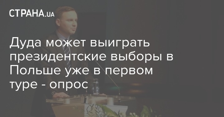 Польский президент Анджей Дуда победил бы уже в первом туре президентских выборов, если бы голосование проходило в это воскресенье.