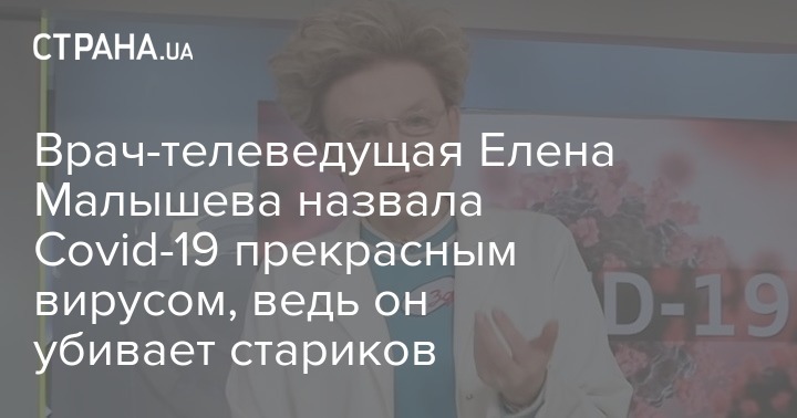 Врач-телеведущая Елена Малышева назвала Covid-19 прекрасным вирусом, ведь он убивает стариков
