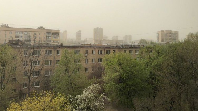 По словам пользовательницы Facebook Нины Токаревой из Киева, на улице настоящая пыльная буря.
