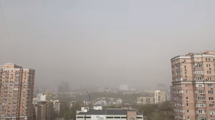 Напомним, в Киеве началась очень мощная пыльная буря, которая окрасила здания в красноватый оттенок.