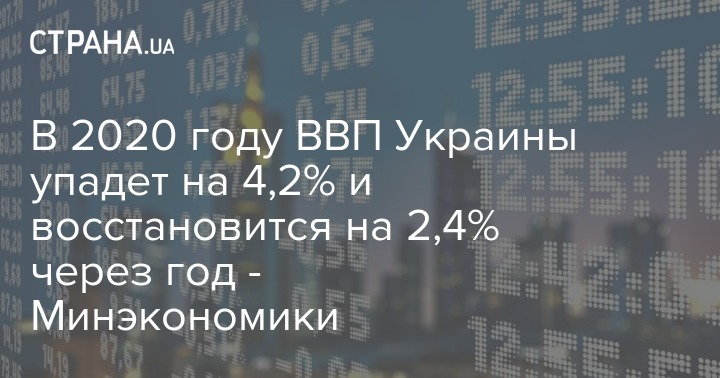 В 2020 году ВВП Украины упадет на 4,2% и восстановится на 2,4% через год - Минэкономики