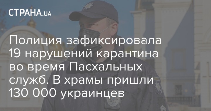 В воскресенье, 19 апреля, правоохранители зафиксировали в Украине 19 случаев нарушения карантина, которые связаны с Пасхой. При этом сами богослужения прошли без нарушений.