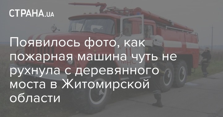 Появилось фото, как пожарная машина чуть не рухнула с деревянного моста в Житомирской области