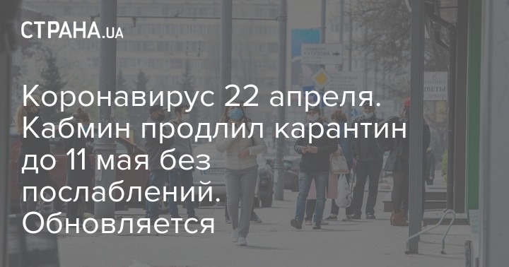 13:33 Кабмин продлил карантин до 11 мая, сообщил телеграм-канал премьера.