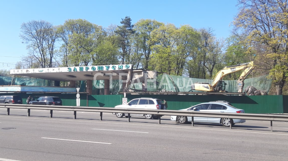 Старый вход в Киевский зоопарк, что на проспекте Победы, начали разрушать бульдозеры.