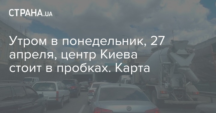 Утром в понедельник, 27 апреля, центр Киева стоит в пробках. На Набережном шоссе автомобилисты по часу стоят в заторах.
