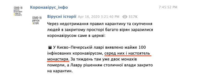 26 апреля российское издание РБК опубликовало новость под заголовком "Киево-Печерской лавре коронавирусом заразились все священники".