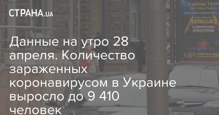 По состоянию на утро вторника, 28 апреля, в Украине зафиксировано уже 9 410 случаев заражения коронавирусом Covid-19. Вчера, 27 апреля, этот показатель составлял 9 009 случаев. Новых случаев за сутки - 401.