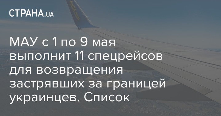 С 1 по 9 мая авиакомпания "Международные авиалинии Украины" (МАУ) выполнит 11 специальных международных рейсов для доставки граждан Украины и нерезидентов из-за границы, которые имеют право въезда в нашу страну.