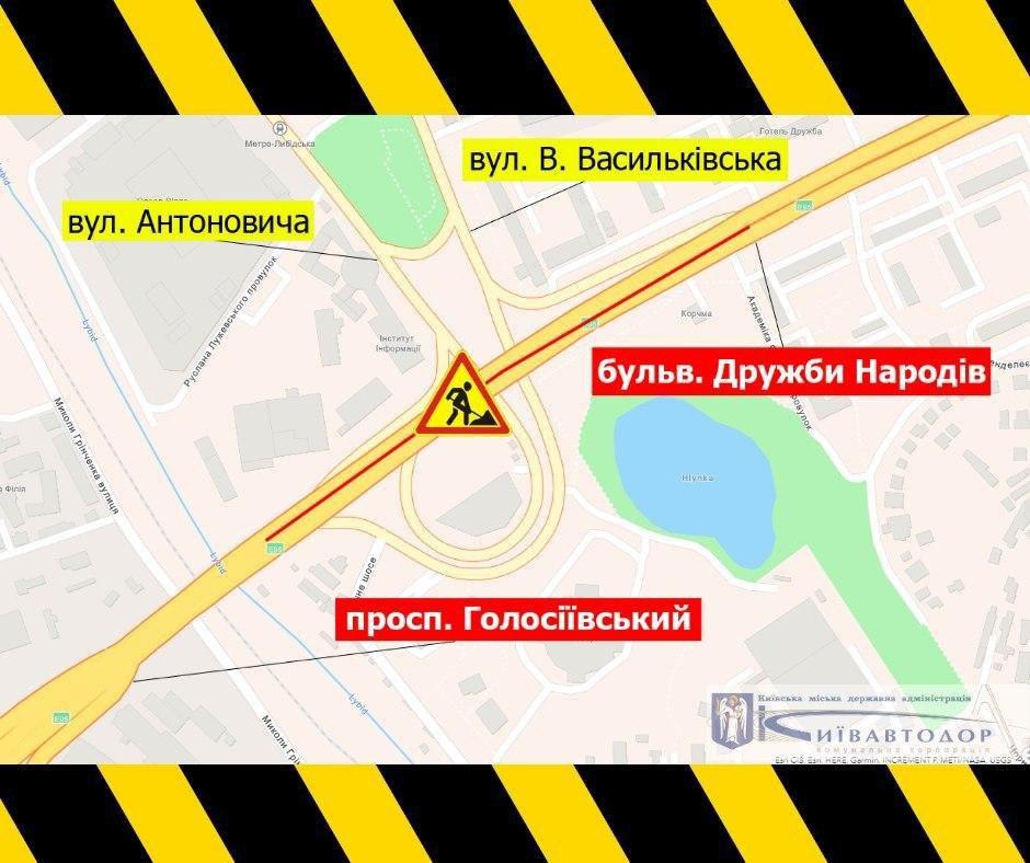 На Лыбидской площади (области между ул. Дружбы Народов и ул. Голосеевским) будут устанавливать современное барьерное ограждение типа Vario Guard, в связи с чем будет перекрываться дорога.