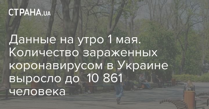 По данным ЦОЗ Минздрава, по состоянию на 09:00 1 мая в Украине 10 861 лабораторно подтвержденный случай Covid-19, из них 272 летальных, 1 413 пациентов выздоровели. За сутки зафиксировано 455 новых случаев заражений.