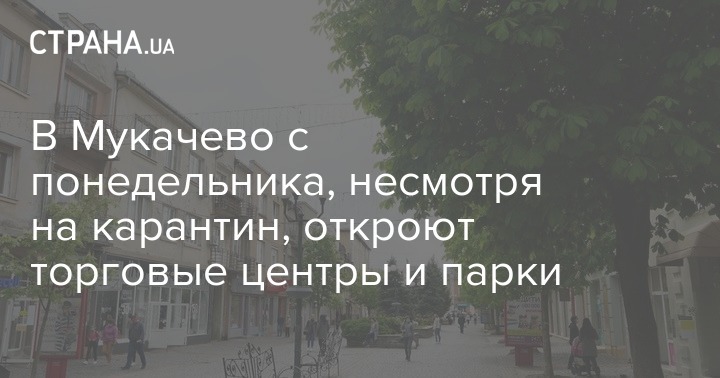 Смягчить ограничения, несмотря на общегосударственный карантин до 11 мая, решили и в Мукачево. С понедельника, 4 мая, городские власти открывают там торговые центры и парки. Об этом сообщается на странице Мукачевского горсовета в Facebook.