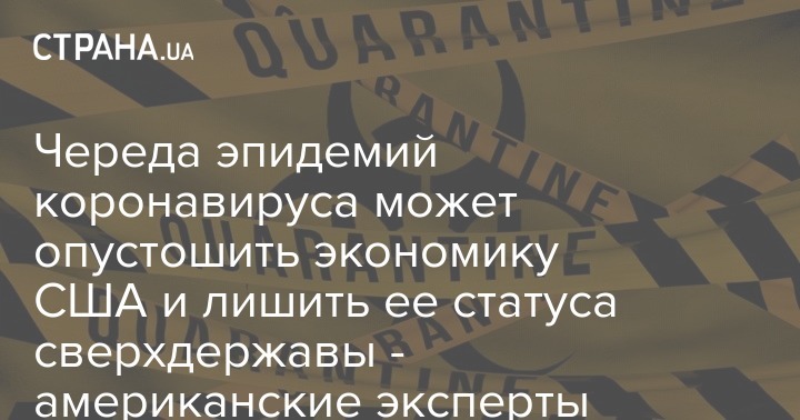 Американские эксперты считают, что коронавирус - мощное биологическое оружие, которое влияет не только на здоровье человека, но и наносит огромный ущерб экономике. По их мнению, череда эпидемий может опустошить экономику США.