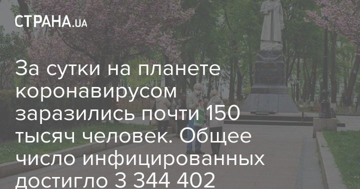 За сутки на планете коронавирусом заразились почти 150 тысяч человек. Общее число инфицированных достигло 3 344 402