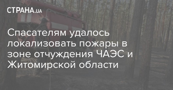 Пожары в лесных массивах зоны отчуждения Чернобыльской АЭС, а также на территории Овручского, Лугинского и Олевского районов Житомирской области локализованы.