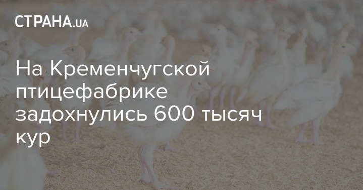 "2 мая 2020 года в 6:00 в с.Потоки Кременчугского района предварительно в результате неисправности трансформаторной подстанции (расположена на территории предприятия), произошло прекращение поставок электроэнергии в обществе с дополнительной ответственностью "Кременчугская птицефабрика". Из-за остановки работы вентиляционной системы погибло 600 тысяч кур", - говорится в сообщении.