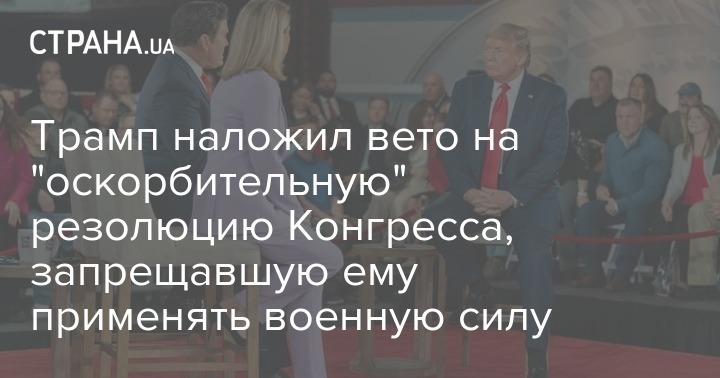 Президент США Дональд Трамп наложил вето на резолюцию американского Конгресса, запрещавшую ему применять военную силу против Ирана. Палата представителей ограничила военные полномочия главы Белого дома этим документом в январе.