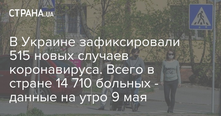 По состоянию на утро, 9 мая, в Украине зафиксировано 14 710 случаев инфицирования коронавирусом. За сутки зафиксировано 515 новых случаев заражение.