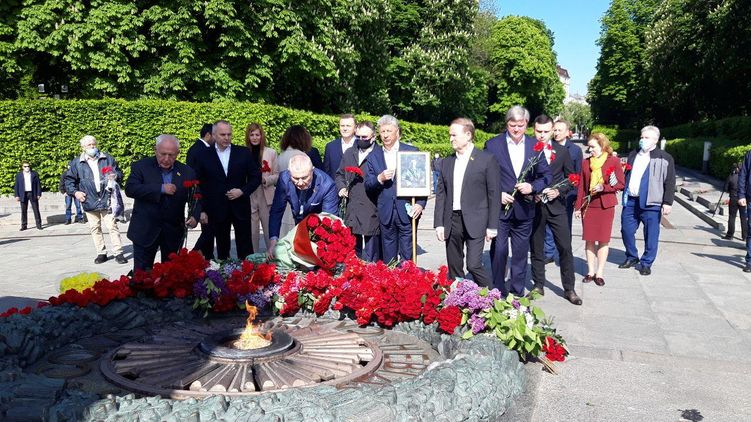 Нардепы от "Оппоплатформы" пришли возложить цветы к Вечному огню. Фото: "Страна"