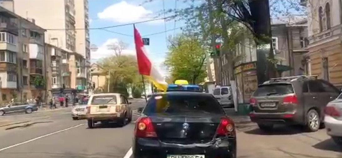 В Одесса авто массово увешивали флагами города. Скриншот с видео
