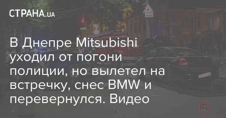 В Днепре Mitsubishi уходил от погони полиции, но вылетел на встречку, снес BMW и перевернулся. Видео