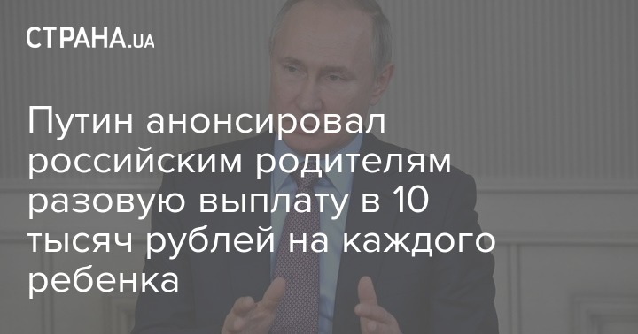 Путин анонсировал российским родителям разовую выплату в 10 тысяч рублей на каждого ребенка