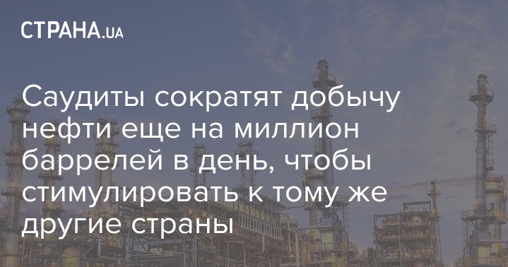 Еще на миллион баррелей в сутки сократит добычу нефти Государственная нефтяная компания Саудовской Аравии Saudi Aramco. Это снижение станет дополнительным к тем, что уже введены сделкой ОПЕК+. Об этом сообщает Reuters, ссылаясь на министерство энергетики Саудовской Аравии.