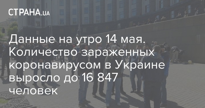 По состоянию на утро четверга, 14 мая, в Украине зафиксировано уже 16 847 случаев инфицирования коронавирусом. Вчера, 13 мая, таких случаев было 16 425. За сутки выявлено 422 новых заболевших.