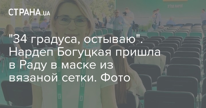 "34 градуса, остываю". Нардеп Богуцкая пришла в Раду в маске из вязаной сетки. Фото