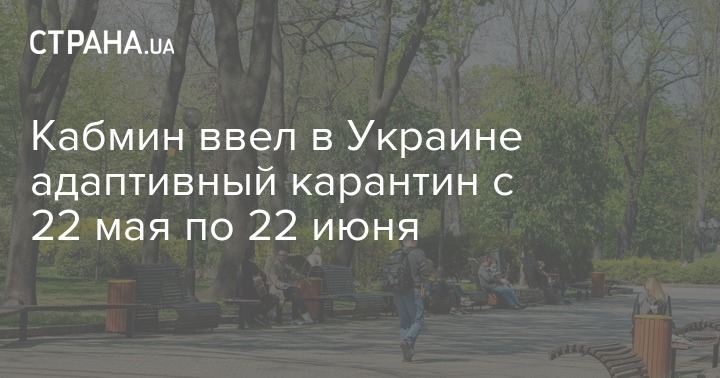 Кабинет министров Украины установил в стране адаптивный карантин с 22 мая по 22 июня.