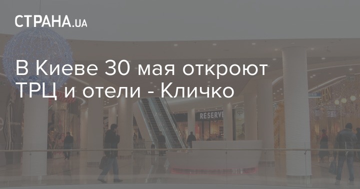 "Сегодня Комиссия по ЧС приняла решение про открытие в столице ТРЦ без работы развлекательных зон. Торгово-развлекательные центры в Киеве с соблюдением санитарных норм откроют с субботы, 30 мая. Также с 30 мая могут начать работу и гостиницы, кроме хостелов", - сказал Виталий Кличко.