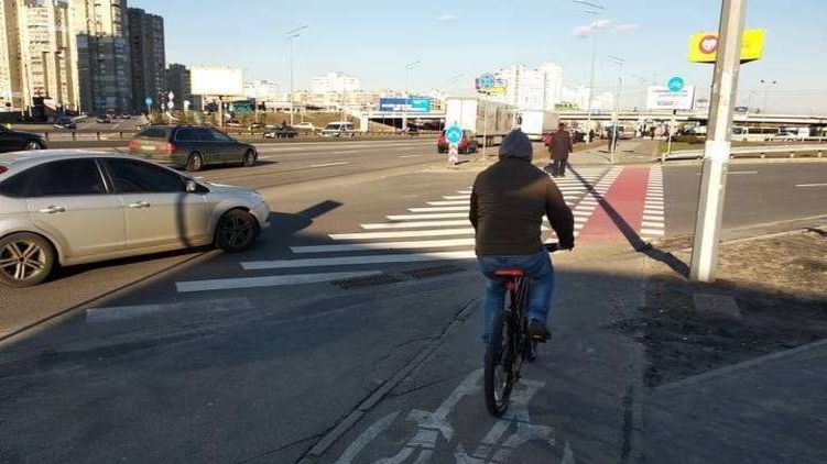 В Киеве на Оболони водитель автомобиля избил велосипедиста, который помешал ему проехать на автомобиле по тротуару.