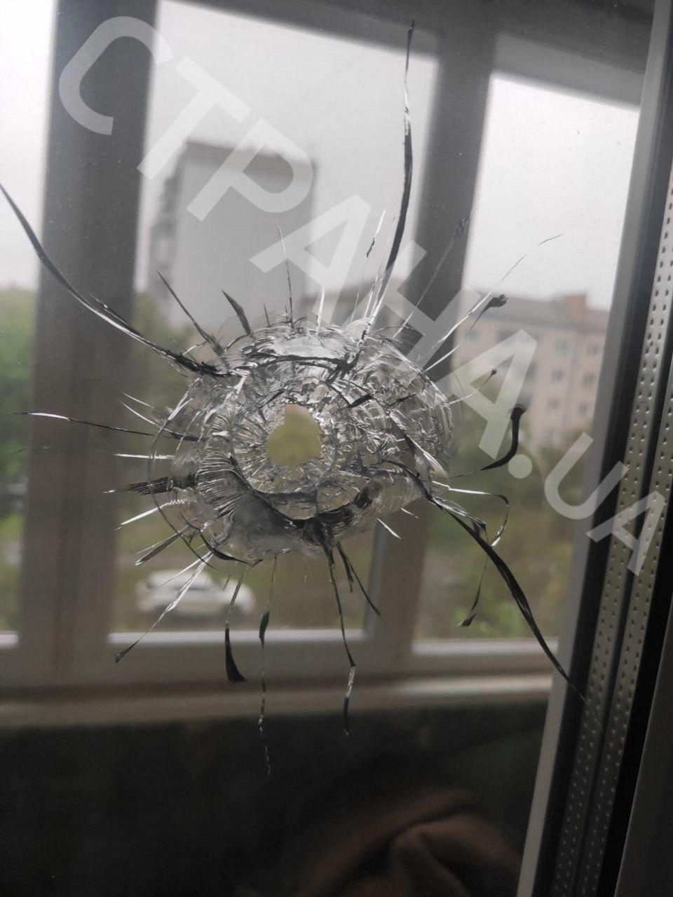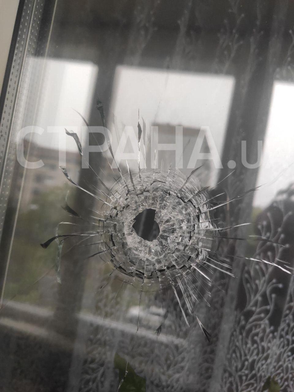 Перестрелка в Броварах. Пуля пробила окно в квартире жилой многоэтажки. Фото и видео