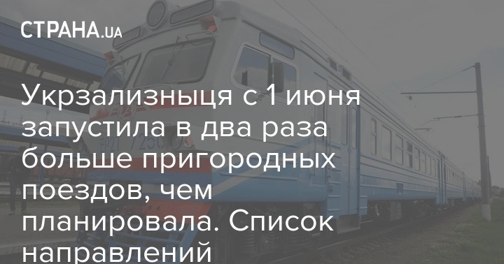 Укрзализныця с 1 июня запустила в два раза больше пригородных поездов, чем планировала. Список направлений