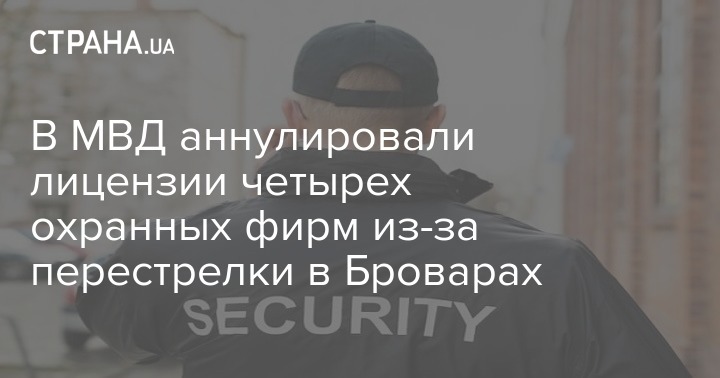 Министерство внутренних дел аннулировало лицензии четырех охранных фирм, сотрудники которых участвовали в перестрелке в Броварах под Киевом.