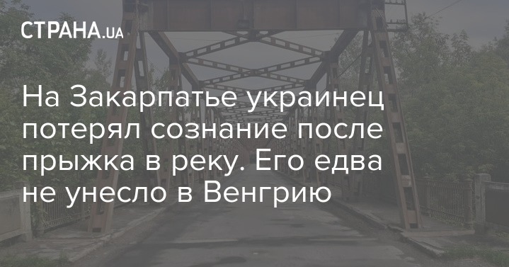 "Вскоре пограничники Венгрии сообщили, что обнаружили неизвестного мужчину без сознания и вызвали скорую помощь. Украинским правоохранителям удалось предварительно установить, что 28-летний украинец, местный житель приграничья, прыгнул с моста, который находится на территории Украины. Далее, вероятно, получив травму, мужчина не смог справиться со стремительным течением реки и его начало сносить на территорию соседней страны", - говорится в сообщении.