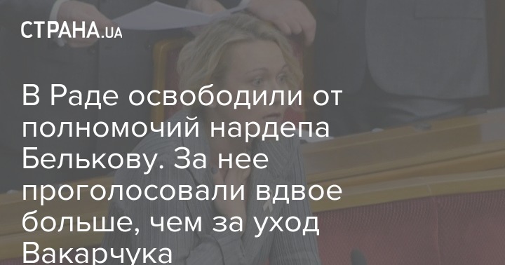 В Раде освободили от полномочий нардепа Белькову. За нее проголосовали вдвое больше, чем за уход Вакарчука