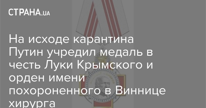 Президент России Владимир Путин подписал указ об учреждении двух новых наград: ордена Николая Пирогова и медали Луки Крымского.