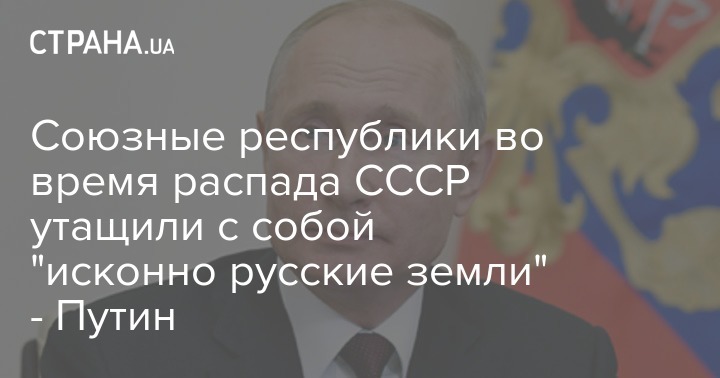 Президент России Владимир Путин считает, во время распада СССР республики нарушили союзный договор. В частности он отметил, государства "утащили" с собой "исконно российские земли" при выходе из состава Советского Союза.